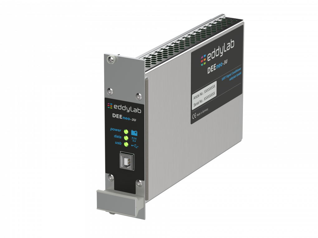 DEEneo-3u signal conditioner for operating inductive LVDT sensors (full bridge) with seismic-proof design for 19" rack integration