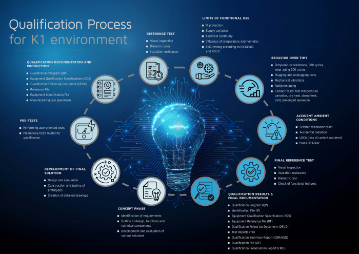 In addition to development, eddylab also offers product qualifications in accordance with the RCC-E or IEEE standard, thereby ensuring that the measurement systems function reliably even under extreme operating conditions. The aim of the qualification is to prove suitability for the specific safety-related application. The qualification includes extensive testing under realistic operating and accident scenarios, including temperature, radiation, vibration, humidity, EMC, seismic, and LOCA tests. This ensures the long-term usability and safety of the products. To ensure full qualification, eddylab collaborates with a wide range of renowned testing laboratories to carry out all necessary tests.